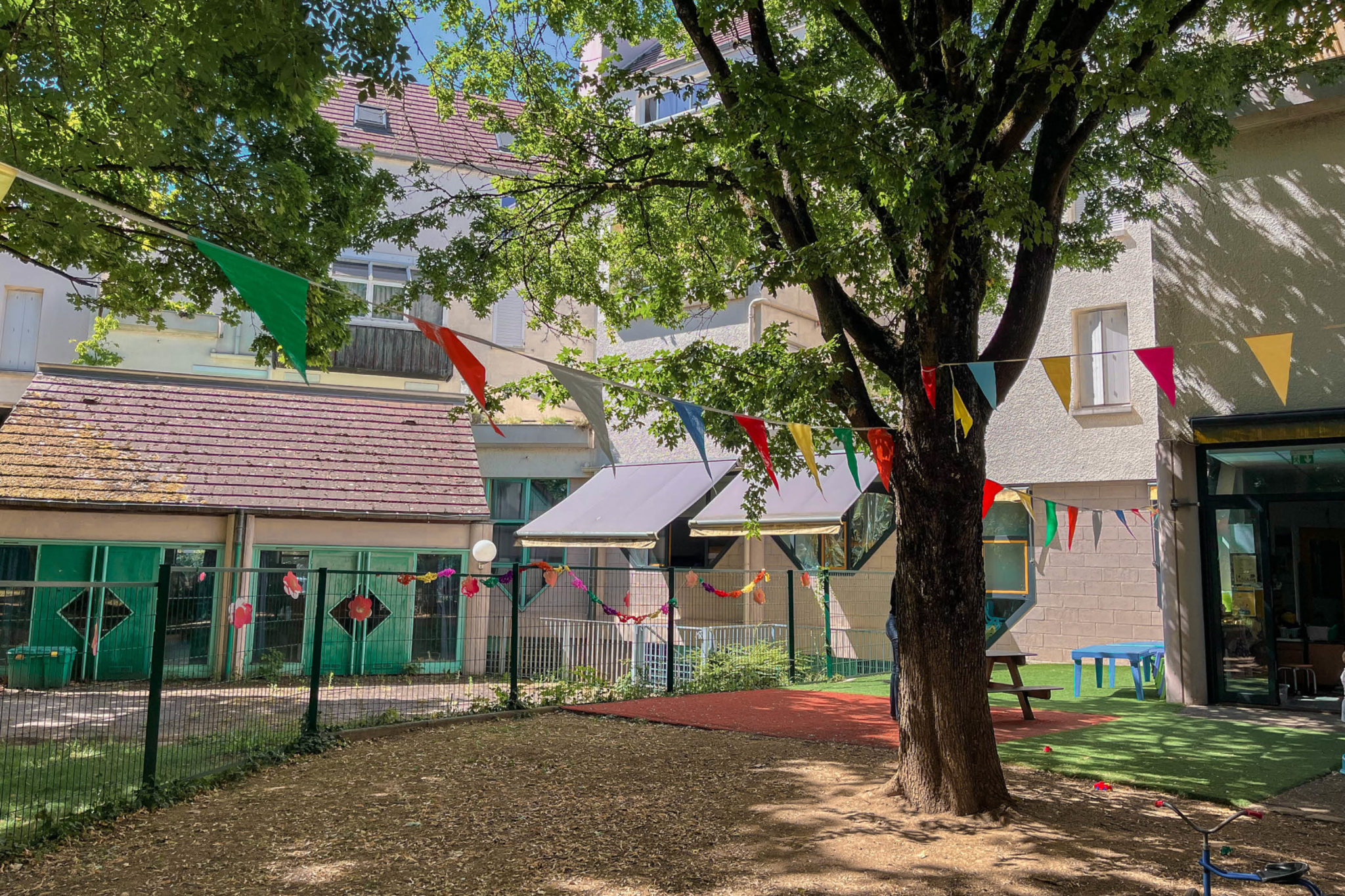 Pensé comme une véritable extension de la cour, ce jardin favorise le jeu libre, l’expérimentation et l’autonomie dans un cadre à la fois ouvert et protecteur. Les aménagements atténuent les obstacles visuels pour permettre une surveillance aisée, tandis que des pergolas végétalisées offrent des zones ombragées et limitent les vis-à-vis avec les logements environnants. Ce lieu accueille les enfants tout au long de l’année dans une atmosphère douce, naturelle et stimulante.